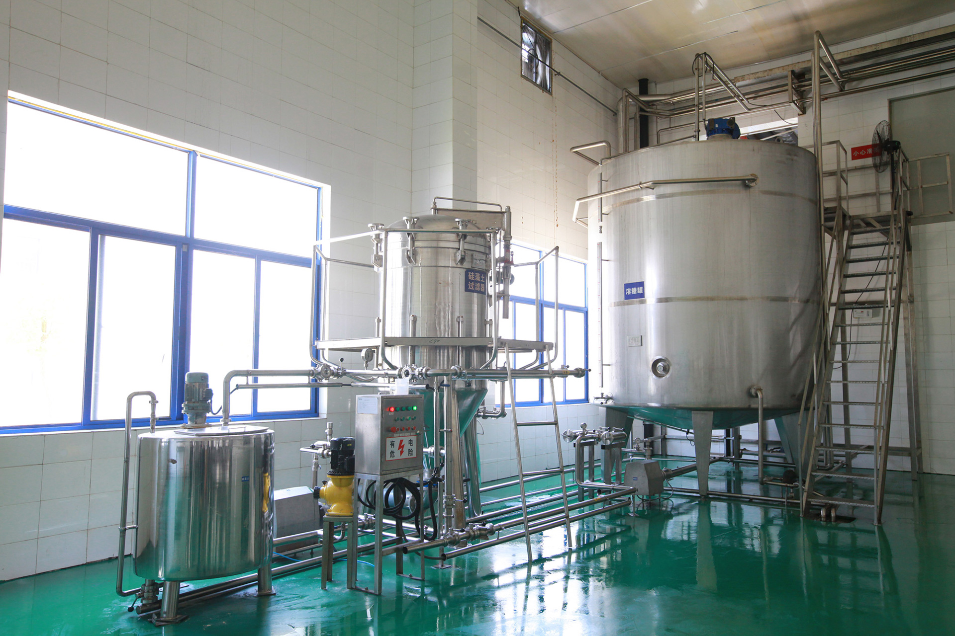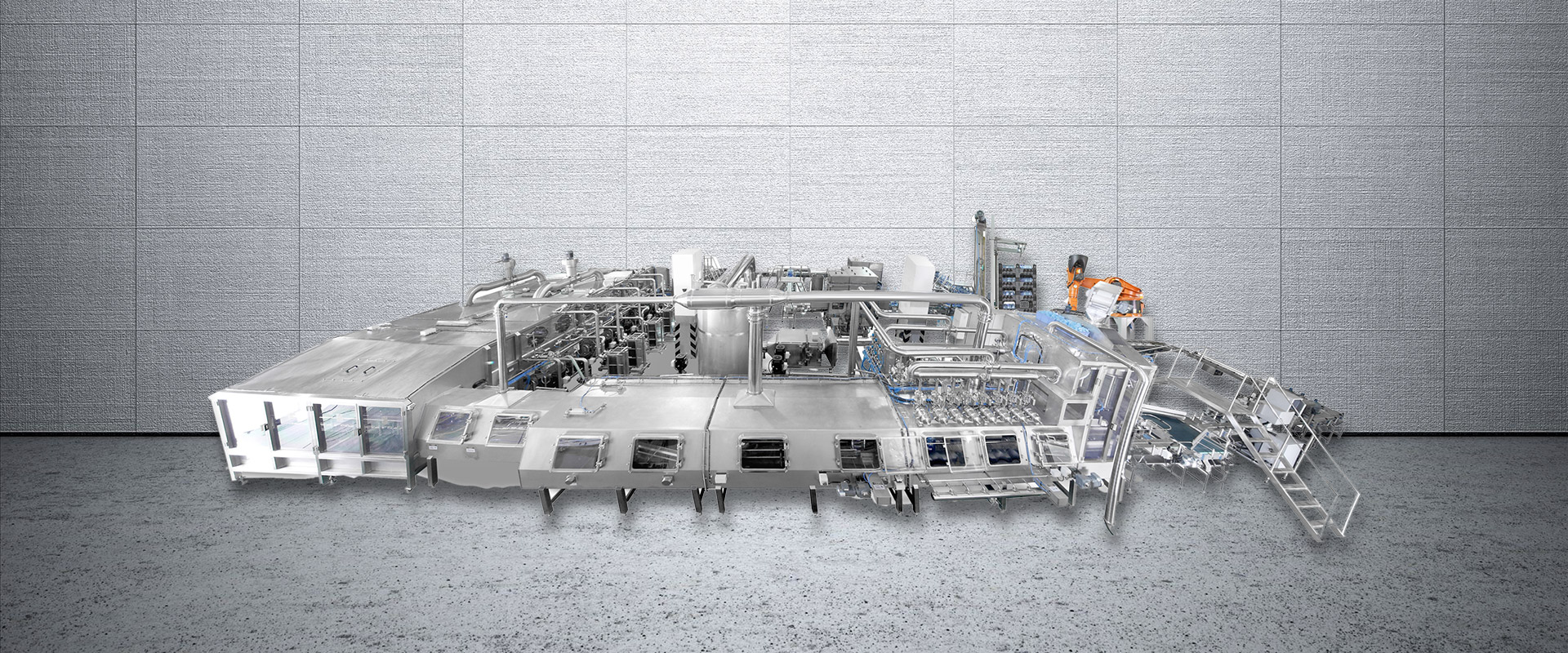 飲料前處理系統應用于熱灌裝、含氣飲料灌裝的前處理成套設備,主要包括熱水系統、溶糖系統、輔料系統、調配系統、CIP系統、萃取系統、殺菌機、混比機等。