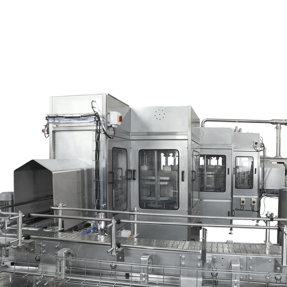 DGER系列旋轉(zhuǎn)外洗機(jī)是以旋轉(zhuǎn)結(jié)構(gòu)為基礎(chǔ)的桶裝水外表面清洗設(shè)備。清洗時(shí),瓶子在外洗機(jī)內(nèi)進(jìn)行公轉(zhuǎn)與自轉(zhuǎn),并通過中心毛刷、邊毛刷與底毛刷所組成的立體洗刷系統(tǒng)對整個(gè)瓶子外表面進(jìn)行360°全方位洗刷。洗刷后通過網(wǎng)狀噴淋隧道進(jìn)行二次噴淋清洗。通過兩種工藝的清洗徹底洗凈瓶子外壁。